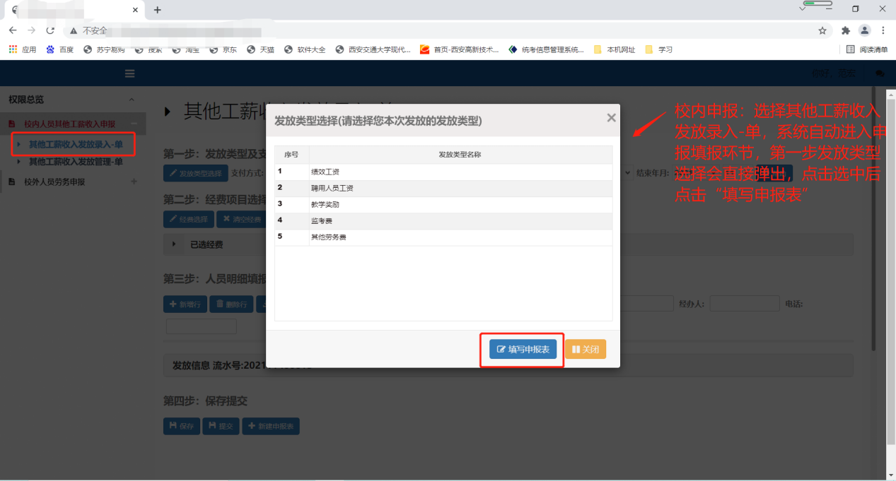 校内人员”其他工薪收入申报如下图: