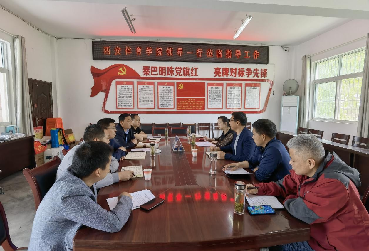 4月25日,西安体育学院党委副书记文立新、党校办副主任耿潇一行来到安康市汉滨区县河镇谢坝村对帮扶工作进行指导。