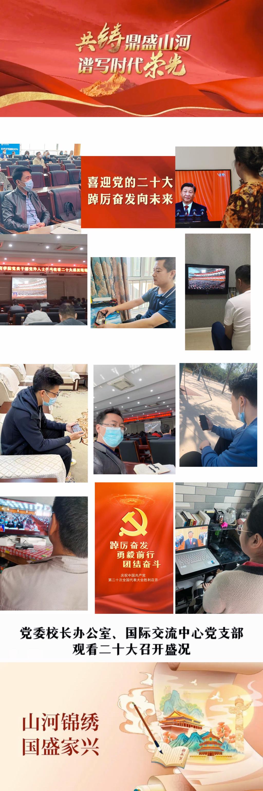 10月16日,中国共产党第二十次全国代表大会在北京隆重开幕,习近平总书记代表第十九届中央委员会向大会作报告。党的二十大是全党全国各族人民迈向全面建设社会主义现代化国家新征程、迈向第二个百年奋斗目标进军这一关键时刻所召开的重要会议。党委校长办公室、国际交流中心党支部全体党员教师通过电视直播、手机直播等方式,认真收听收看大会召开盛况并交流学习心得。