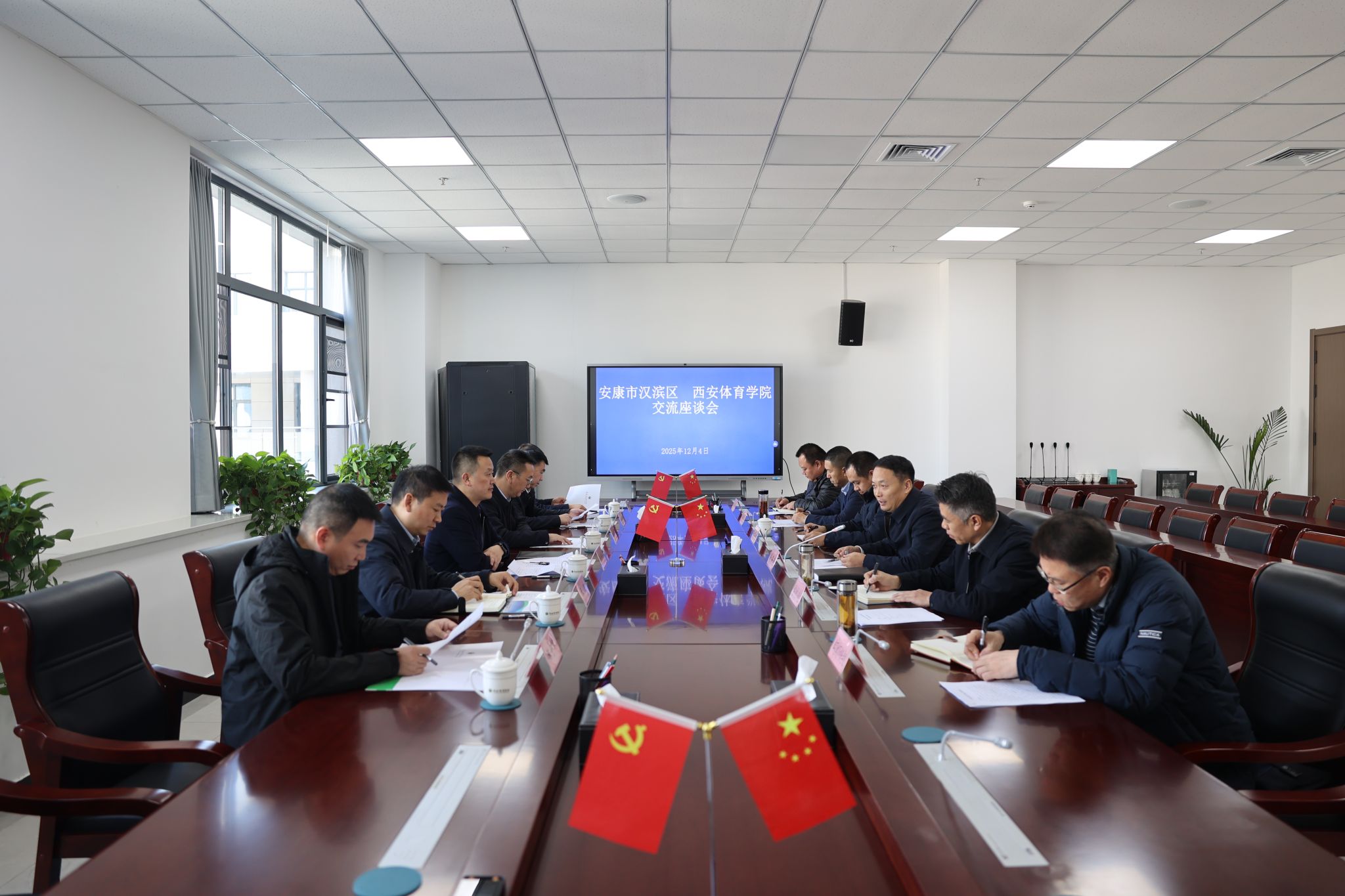 安康市汉滨区区政府副区长徐兴平,区政府办公室主任王杰,区教体局党委书记、局长陈钢,区教体局党委委员、区考试招生工作站站长陈守军,区体育运动中心主任邹伟等及我校党委委员、党委(校长)办公室主任张军,教务处、体育教育训练学院、运动与健康科学学院、保卫处负责人参加座谈会。