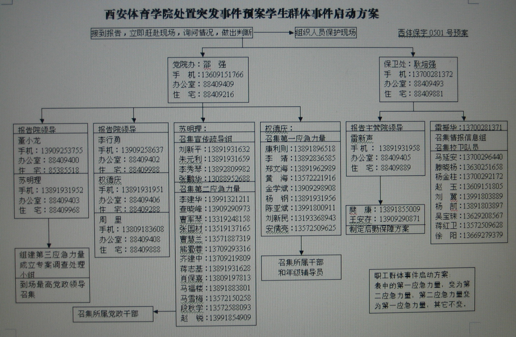 西安体育学院处置突发事件启动方案