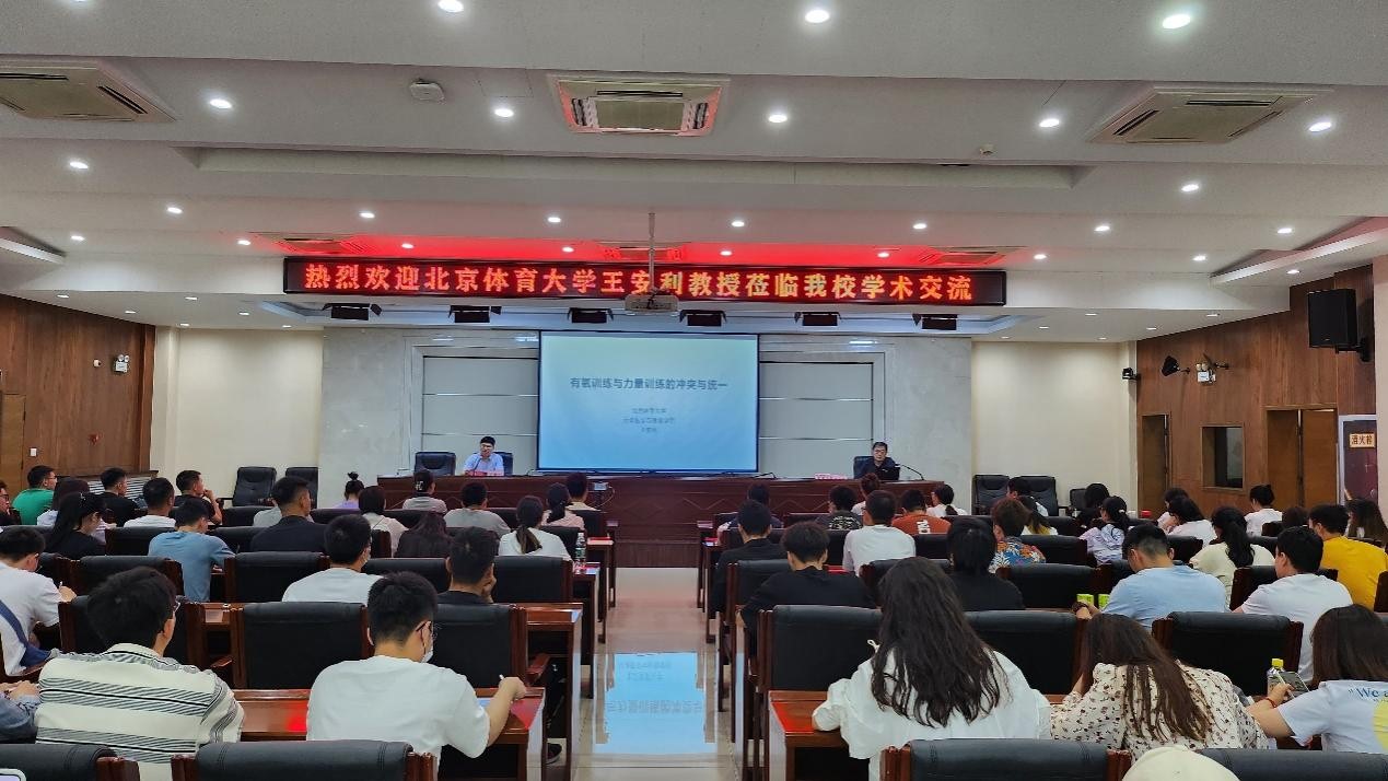 北京体育大学王安利教授作了题为《有氧训练与力量训练的冲突与统一》的报告。王安利教授从有氧训练和力量训练对于人体机能专项适应性影响,混合训练时不同训练手段的量效关系、作用迁移、恢复时间、功能的矛盾与冲突等方面进行了深入浅出的讲解,并寄语西体学子要深入研究和思考,结合运动实践解决精准训练中的热点问题,助推竞技体育和全民健身事业的发展。