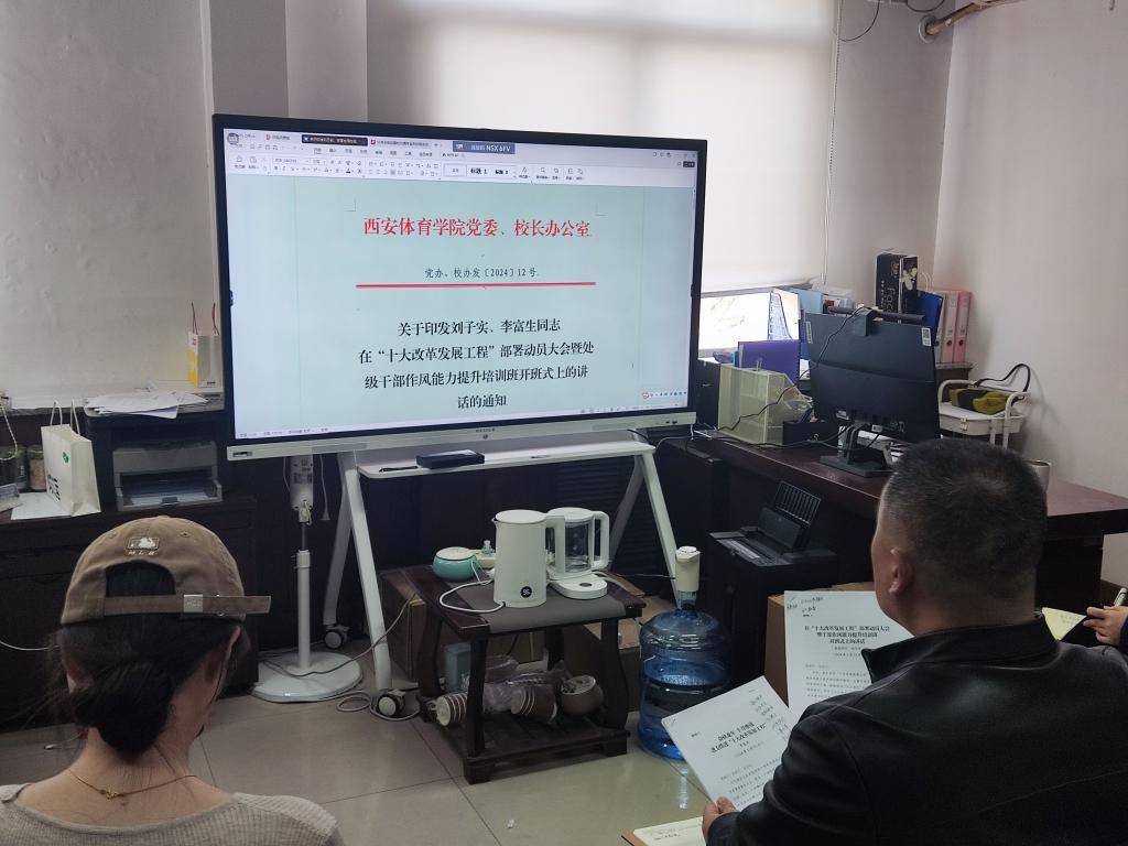 继3月18日学校召开“十大改革发展工程”部署动员大会后,为进一步巩固提升主题教育成效,3月22日下午15:00,发展规划处(政策研究室)组织全处人员再次深入学习贯彻刘子实书记、李富生校长在部署动员大会上的重要讲话精神指示。处长袁金宝同志强调,我们必须深刻领会“党建引领+高质量发展”双融双驱工作模式的实质内涵,在工作实践中紧紧抓住“3131”党建工作模式的任务主线,切实发挥党建工作“把方向、管大局、做决策、抓班子、带队伍、保落实”的定盘针作用。我们必须深刻理解“十大改革发展工程”对于西安体育学院崛起辉煌的重要意义,形成干字当先、干字当头、干字当优工作氛围,本着对学校高质量发展负责,对自身业务工作负责的态度,为推动学校高质量发展贡献自己的智慧和力量。
