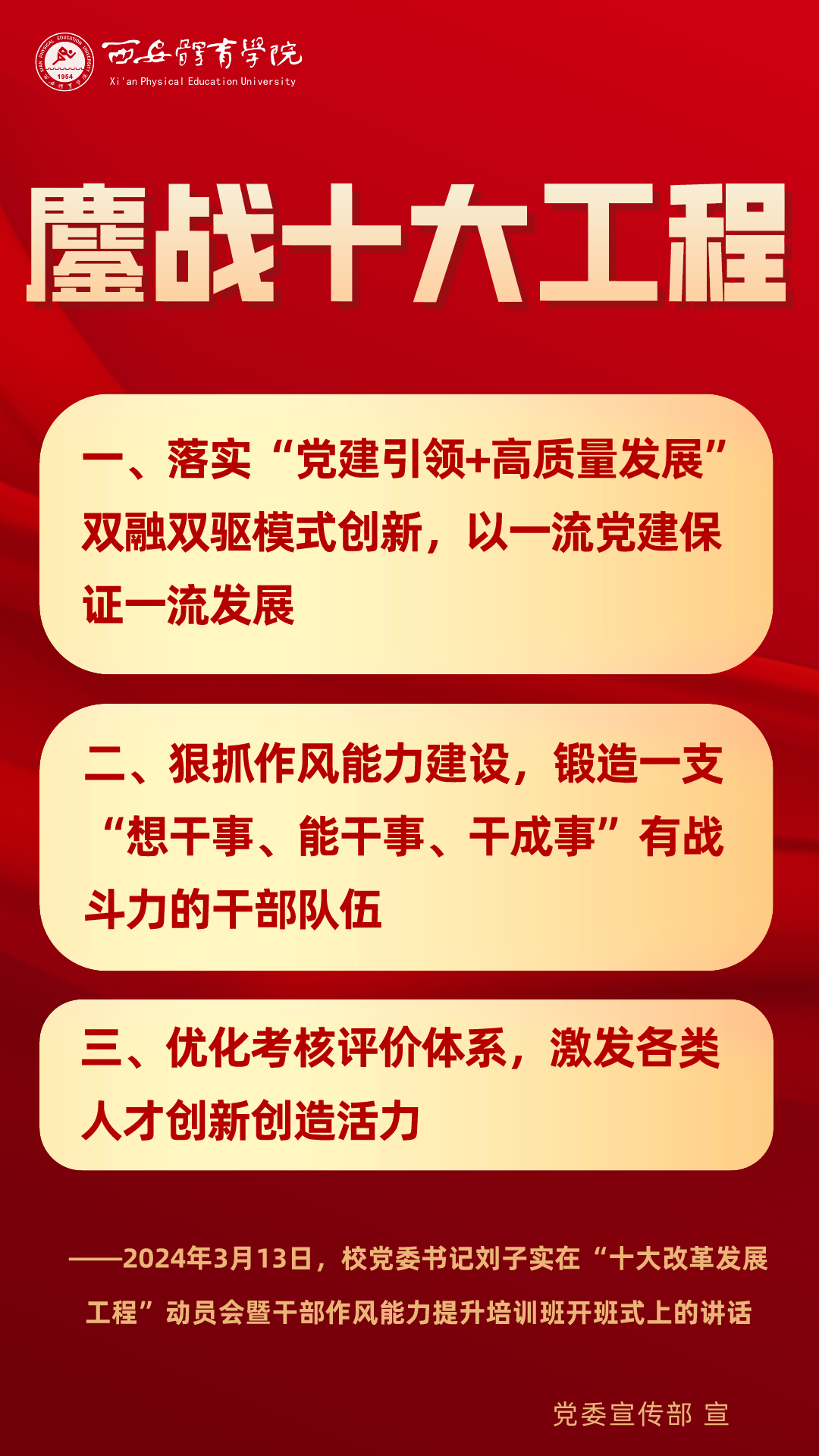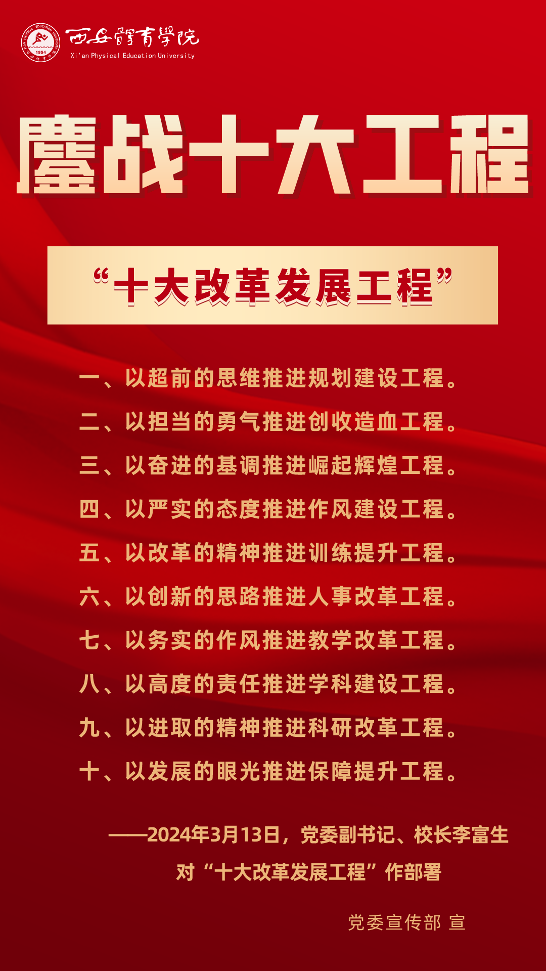 今起,将以专栏形式推出“图说鏖战”系列宣传海报,将“十大改革发展工程”相关会议的主要会议精神和重点内容进行摘录报道,以供师生员工学习交流。