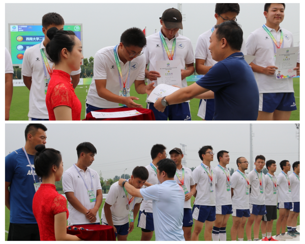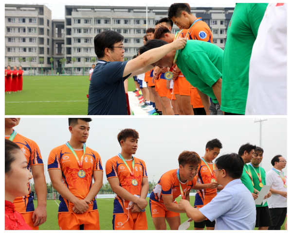 橄榄球竞委会执行主任、我校副校长陈彦和鄠邑区委常委、常务副区长任涛分别为季军颁发证书和奖牌