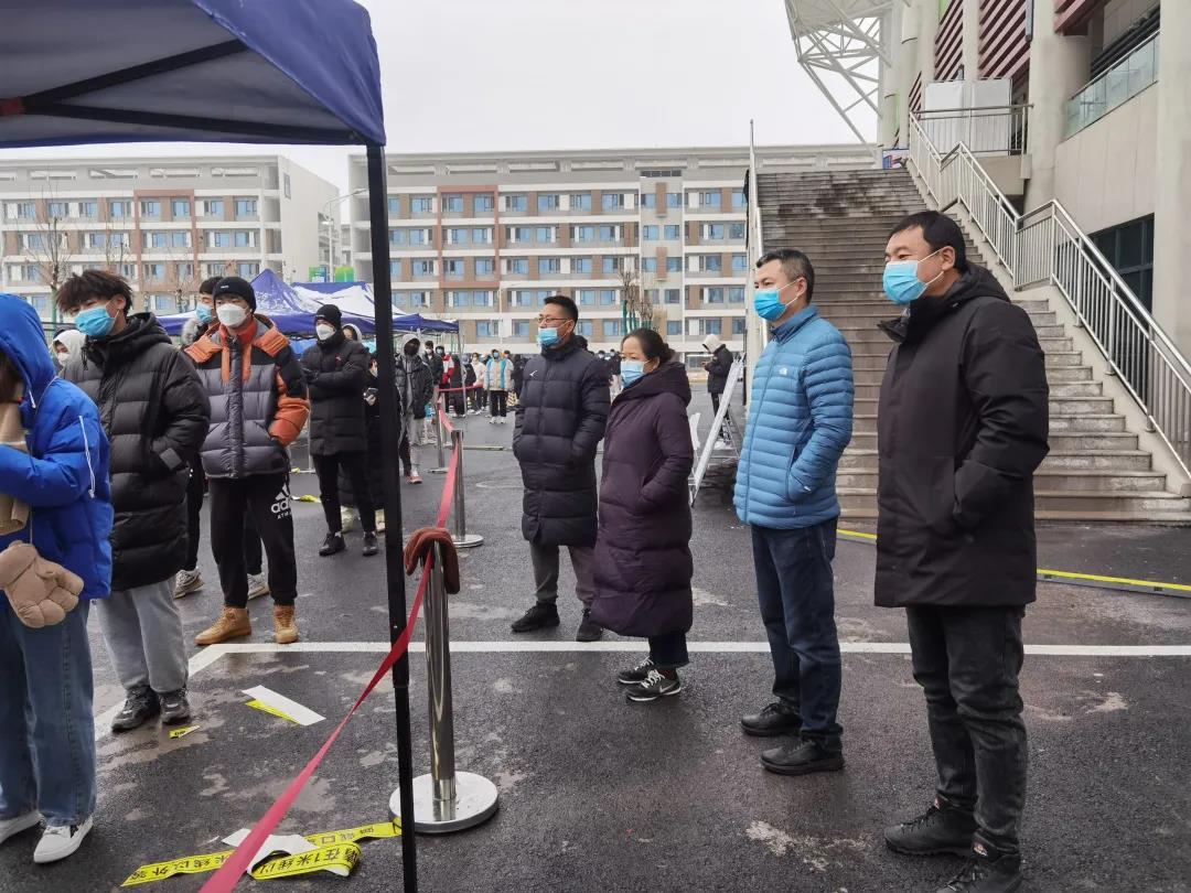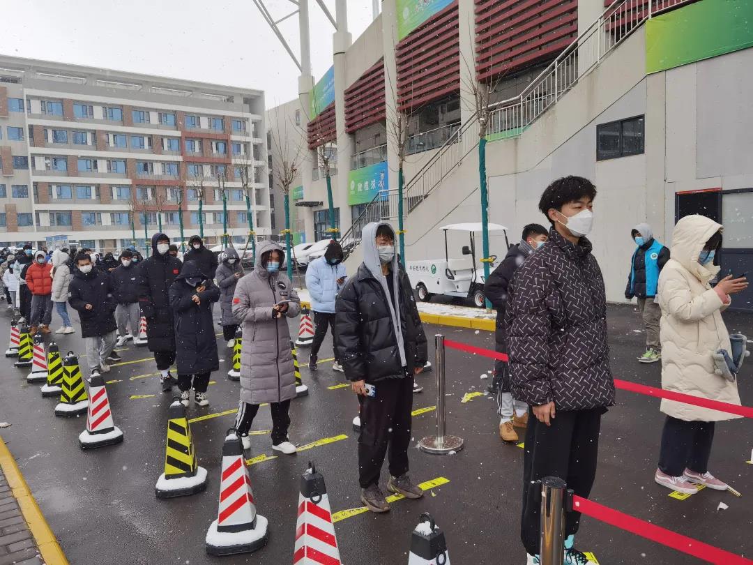 在校区师生、医护人员以及青年志愿者的共同配合下,新一轮全员核酸检测有条不紊地进行。