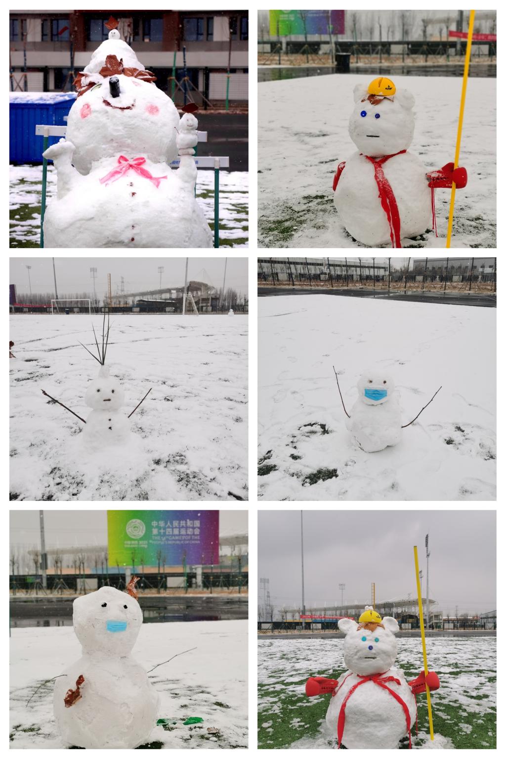 西体学子们在操场上创作雪人