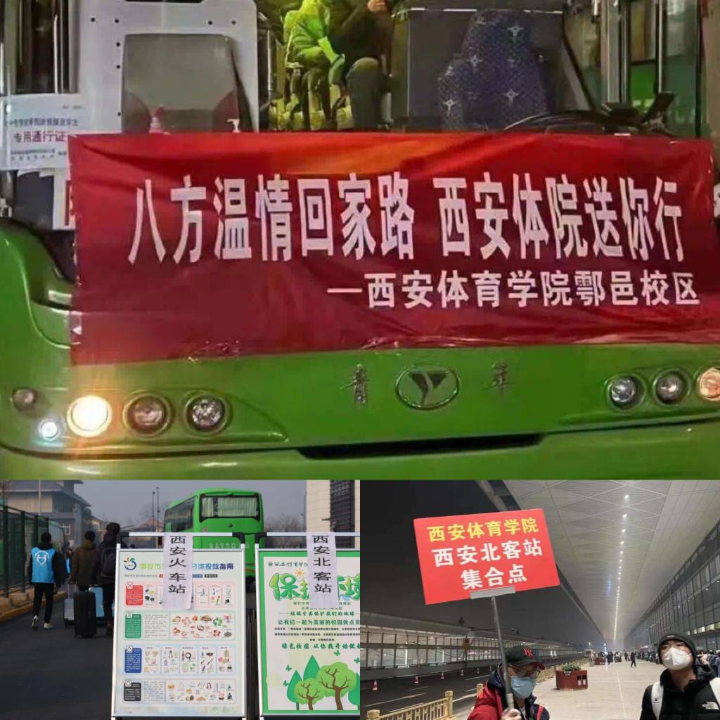 “八方温情回家路,西安体院送你行”。接上级下达指令,西安体育学院鄠邑校区于2022年1月19日对学生实行错峰分批放假,让学生能够有序离校返家过年。