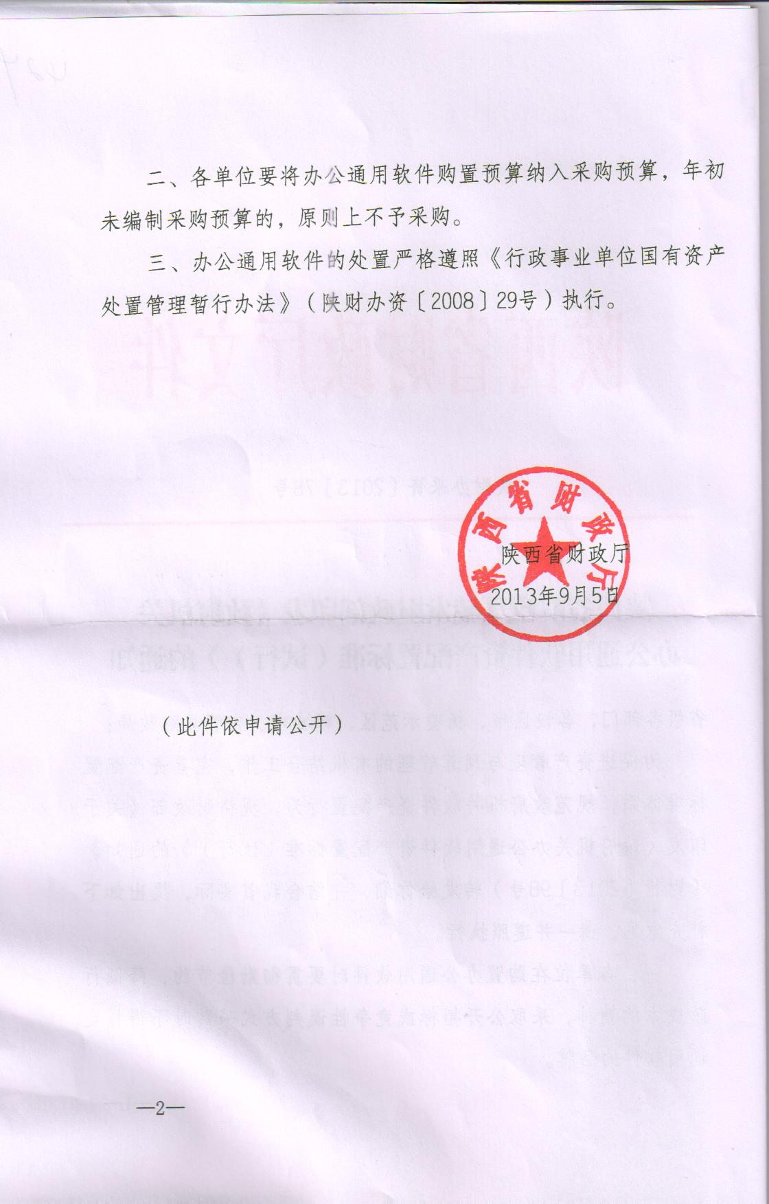 陕西省财政厅转发财政部印发《政府机关办公通用软件资产配置(试行)》的通知