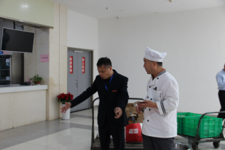 (五)饮食在安,制定校庆菜单。为做好校庆餐饮接待工作,餐饮中心召开专题会讨论校友用餐形式、确定用餐时间、餐券发放、菜品菜谱等问题。为了使校友和各位来宾品到美味地道的“西体味道”,餐饮中心经过反复讨论最终确定了一份集营养、健康、卫生、美味于一体的菜谱,并对菜品的种类、口味及备餐量提前做好安排。校庆期间就餐人数大,就餐时间集中,为保障校友及师生来宾的就餐,餐饮中心员工连续作战不怕疲劳,备餐到深夜。同时,餐饮中心对工作人员进行了服务礼仪培训,规范日常行为,力求服务品质也得到提升。