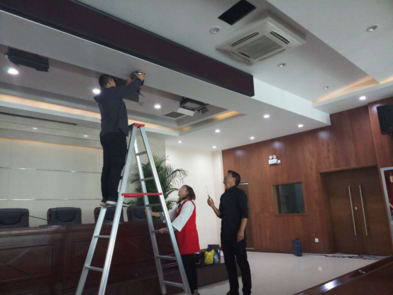 校庆演出活动结束后,后勤管理处(集团)工作人员对各活动场地电线路进行逐一整理和查看,及时恢复环境原貌和保障用电安全,仔细检查会场,排除安全隐患,坚持站好校庆工作的最后一班岗。