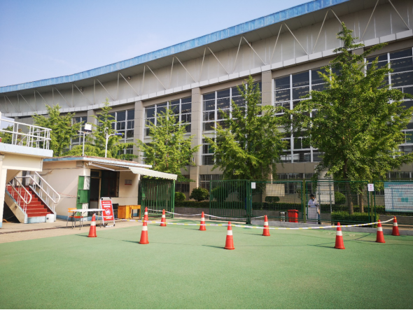 (四)会议(网球)中心在对工作人员进行体温检测、登记后对2号行政楼进行清洁、消毒、通风及进门体温检测工作,今日共检测教职工体温共计17人次。