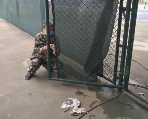 2、第一网球场焊旧盒叶两副,加装新盒叶一副;