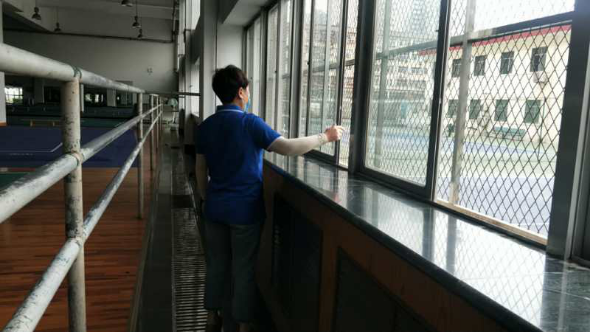 (四)后勤管理处(集团)场馆中心在对工作人员进行体温检测、登记后,严格按照校医院《场馆消毒指南》要求做好场馆(地)清洁、消毒、通风及师生体温检测工作,全天服务师生共计217人次: