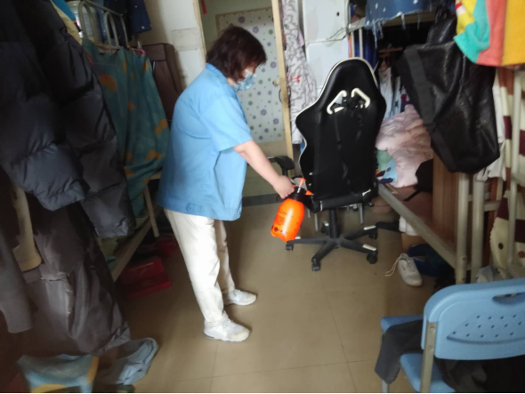 (二)后勤管理处(集团)学生公寓管理中心在对工作人员进行体温检测、登记后,严格按照校医院《学生公寓消毒指南》要求做好学生公寓清洁、消毒每日2次,通风工作每日3次,每次30分钟,以及学生体温检测工作。
