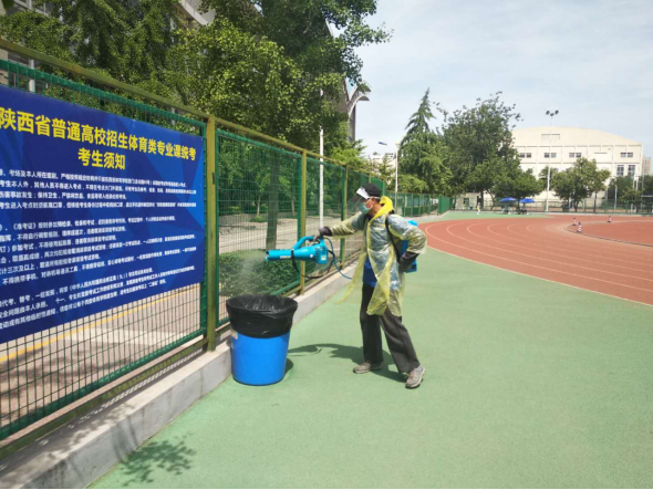 (一)后勤管理处(集团)保洁绿化中心在对工作人员进行体温检测、登记后,严格按照校医院要求做好我校校园环境、教室清洁、通风、消毒工作。