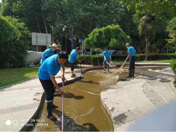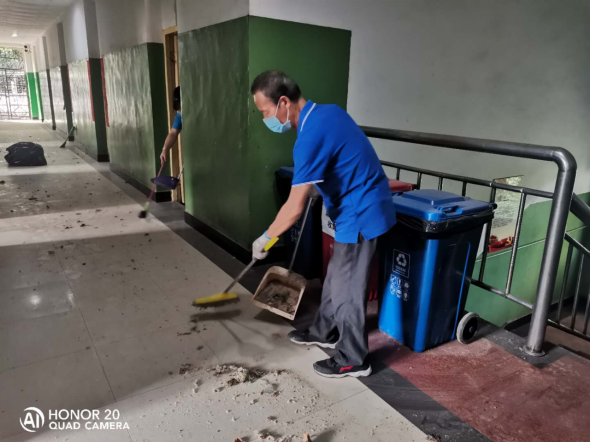 (一)后勤管理处(集团)保洁绿化中心在对工作人员进行体温检测、登记后,严格按照校医院要求做好我校校园环境、教室清洁、通风、消毒工作。