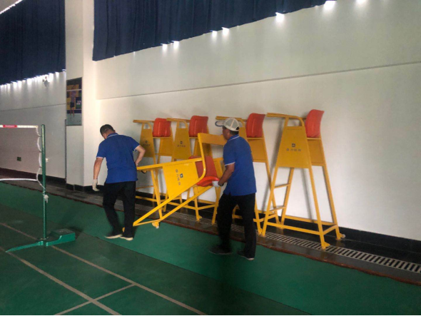(二)后勤管理处(集团)场馆中心在对工作人员进行体温检测、登记后,严格按照校医院《场馆消毒指南》要求做好场馆(地)清洁、消毒、通风及师生体温检测工作,具体如下: