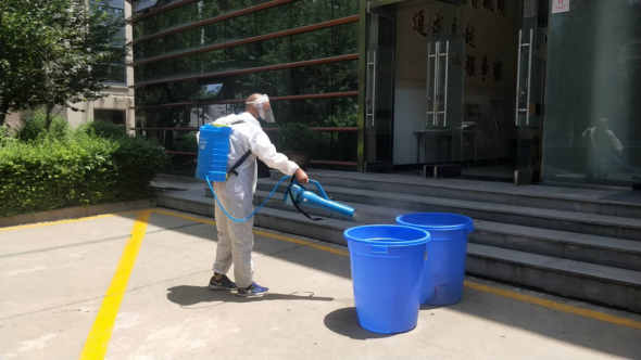 (一)后勤管理处(集团)保洁绿化中心在对工作人员进行体温检测、登记后,严格按照校医院要求做好我校校园环境、教室清洁、通风、消毒工作。