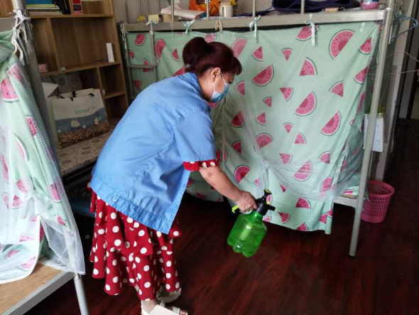 (二)后勤管理处(集团)学生公寓管理中心在对工作人员进行体温检测、登记后,严格按照校医院《学生公寓消毒指南》要求做好学生公寓清洁、消毒每日2次,通风工作每日3次,每次30分钟,以及学生体温检测工作。