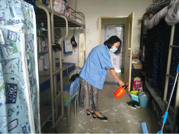 (一)后勤管理处(集团)学生公寓管理中心在对工作人员进行体温检测、登记后,严格按照校医院《学生公寓消毒指南》要求做好学生公寓清洁、消毒每日2次,通风工作每日3次,每次30分钟,以及学生体温检测工作。