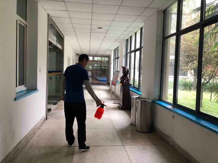 (三)后勤管理处(集团)物业中心在对工作人员进行体温检测、登记后,严格按照校医院要求做好我校校园环境、教室清洁、通风、消毒工作。
