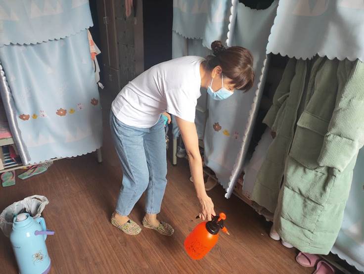 (一)后勤管理处(集团)学生公寓管理中心在对工作人员进行体温检测、登记后,严格按照校医院《学生公寓消毒指南》要求做好学生公寓清洁、消毒每日2次,通风工作每日3次,每次30分钟,以及学生体温检测工作。