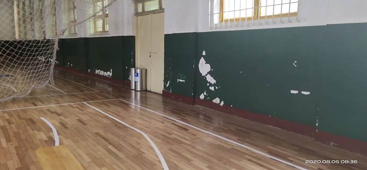 3、老篮球馆墙面铲除损坏漆面;