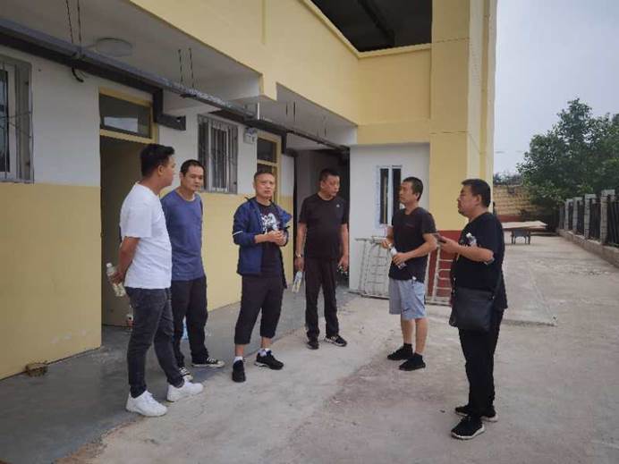 2020年8月21日后勤管理处(集团)处长许伟与后勤管理处(集团)沣峪校区学生公寓加固项目工作组对沣峪校区学生公寓加固施工现场进行实地查看。