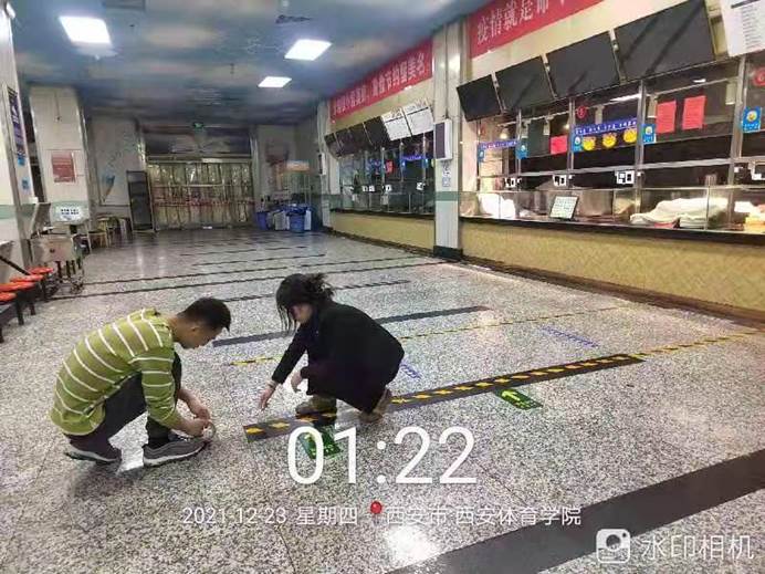 各中心工作人员对学生公寓、教学楼、各场馆(地)、学生餐厅、家属区等公共区域进行每日2次消杀工作,持续做好校区内各场所的消毒工作;物业中心工作人员及时做好校园卫生保洁工作,每日清运垃圾约150桶,学生公寓在做好公寓楼疫情防控工作的同时为后勤无法回家的工作人员安排住宿约81人,购置免洗酒精洗手液1箱、口罩1000只、医用一次性手套500双等防疫物资;教学保障中心每日服务两个校区学生共计3000余人次,维持学生的日常锻炼需求;学生餐厅每天三餐服务约18000余人次;保障中心配合学校做好核酸检测场所的正常供电工作,对各类设施设备进行安全巡查,持续做好我校水电暖保障及各类维修工作。