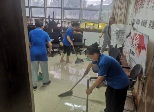 暴雨发生以来,后勤管理处(集团)班子成员以身作则,靠前指挥,各中心全体工作人员始终坚守在一线,对全校进行全方位防守、全天候巡查,切实做到了及时发现和处置各类安全隐患,做到了险情早发现、早处置、早化解。