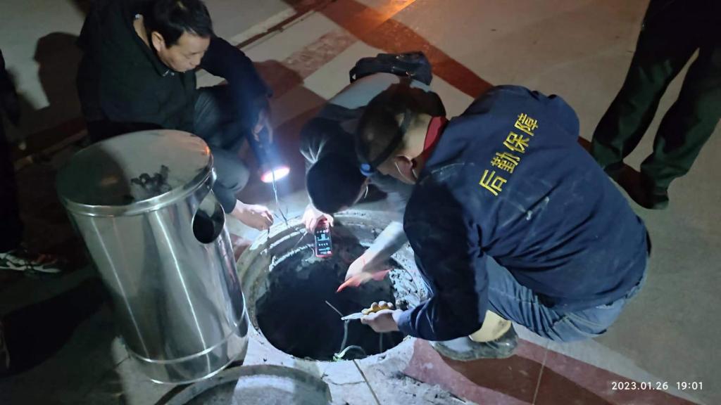 1月26日上午,后勤管理处(集团)接到报修,田径馆西南角电缆井出现冒烟问题,维修人员迅速赶到现场并通知配电室进行紧急断电,在现场得到控制后,开始进行故障排查,很快确定起火原因是田径馆西南角监控电源线短路导致的,维修人员随即对电缆井所有电缆进行排查、检修。发现主电缆损伤严重,绝缘层烧坏点位较多,电缆估计有20-30处着火点,由于电缆井空间狭小,工作人员通过实际勘察,制定最佳施工方案,经过两天加班加点抢修,目前所有故障点均已恢复正常。