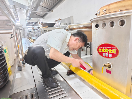 工作人员对餐厅燃气管道、后厨操作间燃气硬件设备、燃气报警装置、燃气使用管理、用气场所安全情况等进行全面排查。