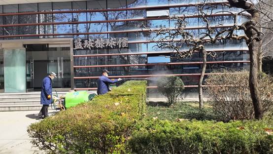 因地制宜合理的分析,严格执行危险品安全使用规定,专人专管,选用低毒高效农药,控制药物比例,确保病虫害防治由表及里不交叉感染。园林绿化团队利用打药机人工喷雾作业、涂摸、浇灌等多种方式,确保校园园区、家属区防治无死角,能够有效预防春季病虫害的滋生,改善绿植、苗木、花卉等生长状况,确保校园春季桃花、广玉兰、连翘、樱花等在不同时期健康生长。