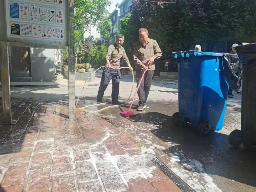 后勤管理处(集团)物业中心在夏季来临之际,针对蚊蝇繁殖和瓜果垃圾增多的情况,对校园及家属区的四色垃圾桶进行了清洗和消毒作业。保洁人员使用刷子和钢丝球彻底清理了垃圾桶的内外底部,并进行了除臭处理,有效降低了细菌滋生,保持了垃圾桶的清洁,提升了校园环境。