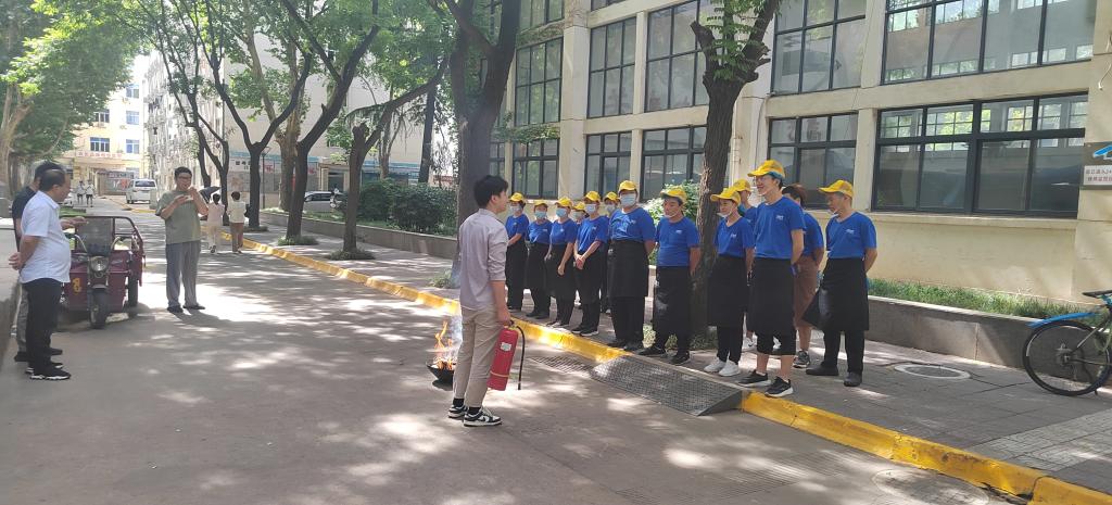 为进一步做好学生餐厅安全管理工作,增强餐厅工作人员消防安全意识,6月13日下午,学生餐厅组织工作人员开展消防演练培训活动。