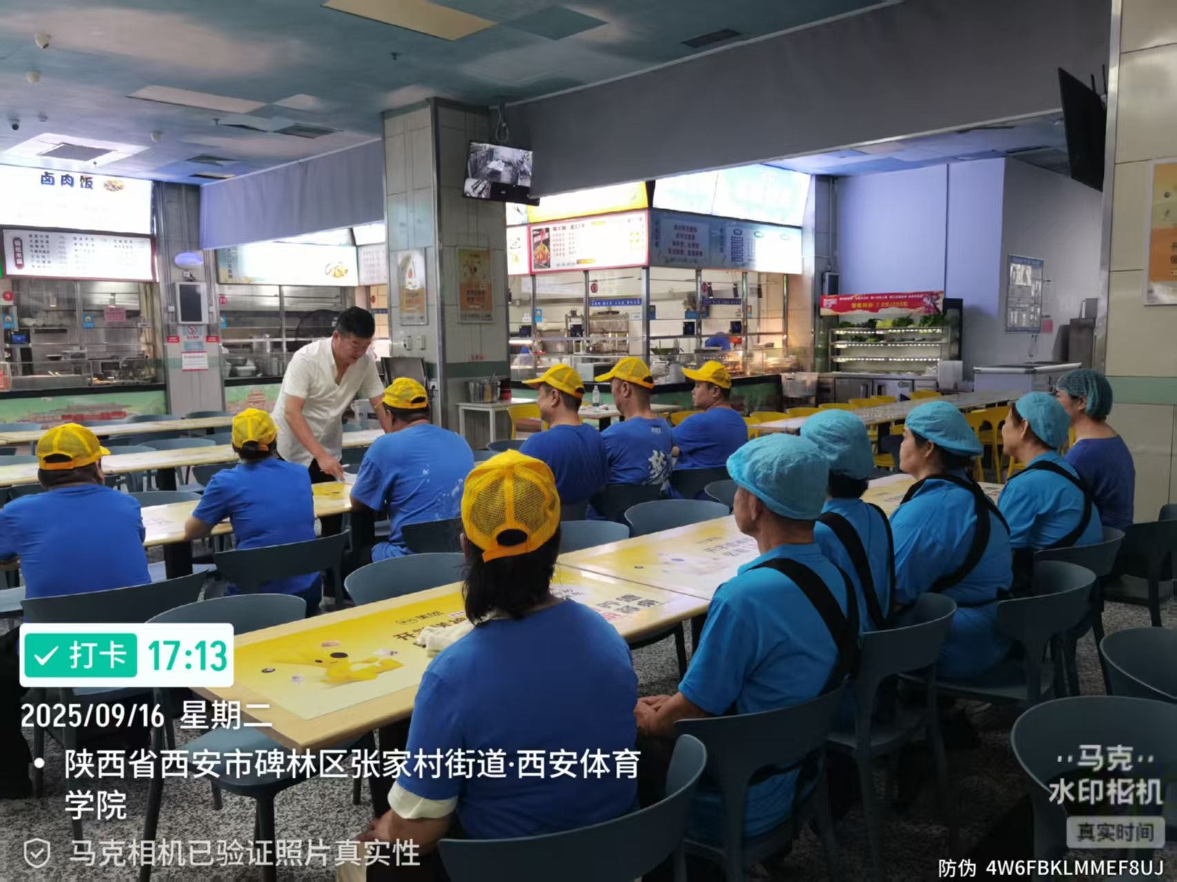 我们组织餐厅全体员工开展“十统一六到位”管理模式专题学习,通过集中培训、现场演练等形式,提升从业人员专业技能与责任意识,推动食堂标准化、规范化运行。