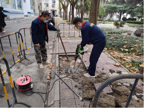 工作人员正在维修路面