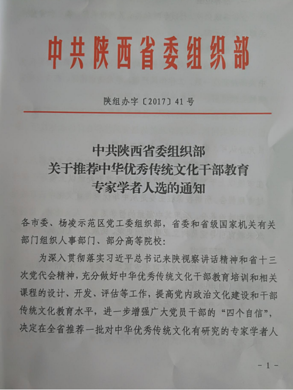 附:中共陕西省委组织部《关于推荐中华优秀传统文化干部教育专家学者人选的通知》