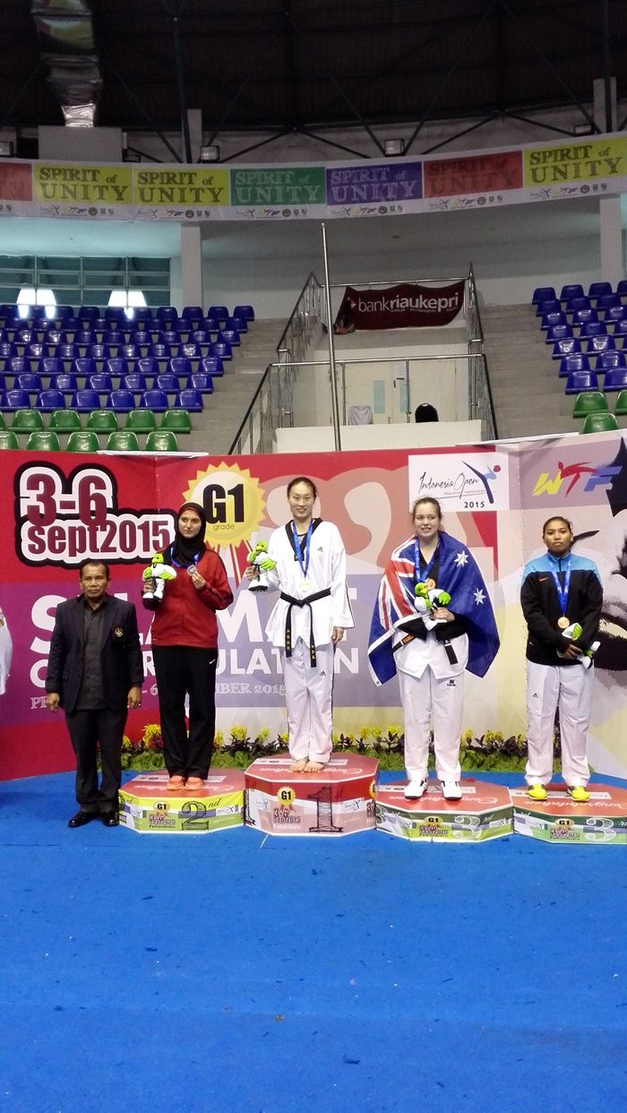 本网讯9月3日至6日,在北干巴鲁举行的印度尼西亚跆拳道公开赛中,我院跆拳道名将李东华夺得了女子+73公斤级比赛冠军。