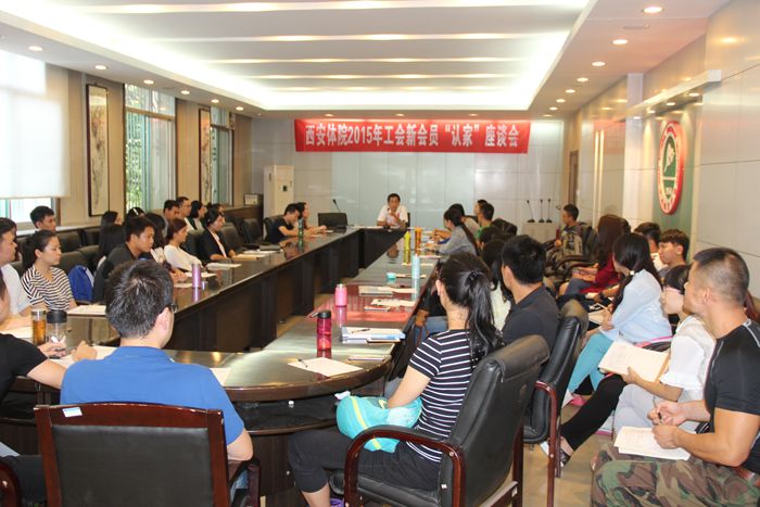 本网讯9月11日下午,院工会在行政楼二楼大会议室组织召开工会新会员“认家”座谈会。院工会全体干部和53名新聘干部、教师参加了座谈会。