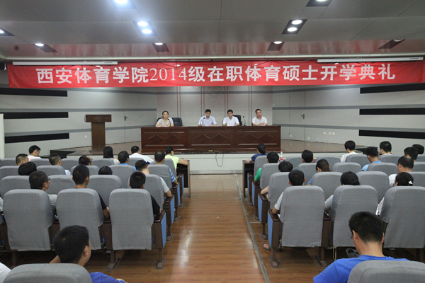 本网讯 7月9日上午,研究生部在教学楼一楼报告厅举行了“2014级在职体育硕士开学典礼”,副院长刘新民、研究生部主任卢耿华、党总支书记熊蜀蓉、副主任姜涛、部门各科室同志及2014级在职体育硕士130名学员一同参加了开学典礼。