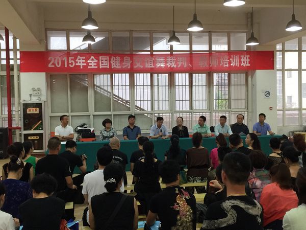 本网讯日前,由国家体育总局社体中心、中国体育舞蹈联合会举办的“全国健身交谊舞教师、裁判员培训班”在我院举办。体育舞蹈联合会健身交谊舞和社会舞蹈委员会主任顾自立,副主任任荣生、吴东方、罗新星、黎适中,我院副院长刘新民,体育艺术系主任赵志伟、党总支书记李美霞,副主任杨占军以及来自全国各地的交谊舞专家、学者及爱好者150余人出席了会议。刘新民副院长为开班仪式致辞。