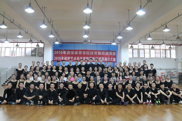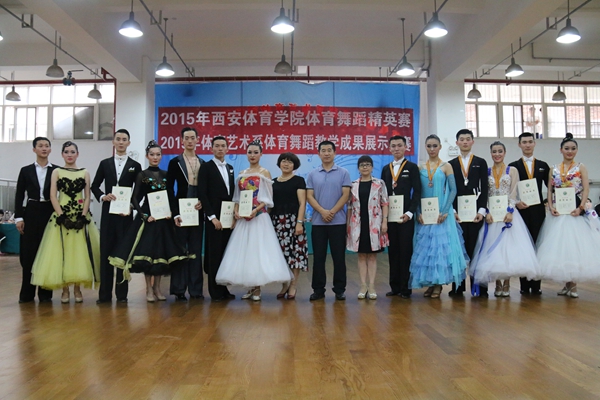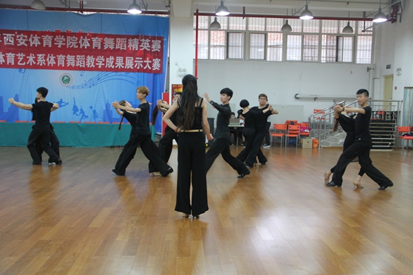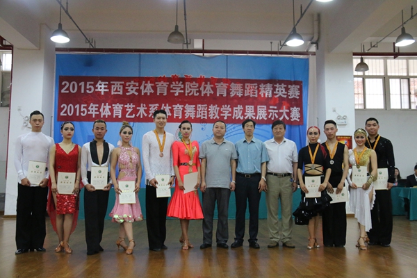 本网讯 为提高学生体育舞蹈技术与实践能力,日前,体育艺术系举办了2015年“校园体育舞蹈精英赛暨体育艺术系体育舞蹈教学成果展示大赛”。 陕西省社体中心副主任王爱军、培训部主任杨凯及我院副院长刘新民与相关部门负责人亲临现场观摩指导。