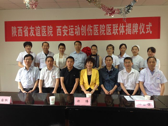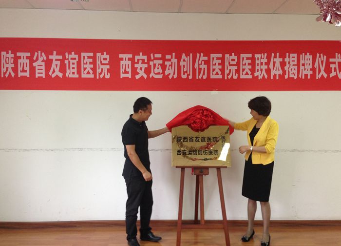 5月29日上午,在医院三楼会议室,后勤管理处教学实验医院与陕西省友谊医院举行了医疗联合体签约和揭牌仪式。后勤管理处处长许伟、党总支书记宋国权、教学实验医院院长何昌谋、陕西省建筑集团总公司副总经理王淑娅、友谊医院书记王民坤、副院长刘培胜、王森等领导共同参加了签约和揭牌仪式。后勤管理处处长许伟和陕西省建筑集团总公司副总经理王淑娅代表双方单位在会上分别致辞,他们表示,两家医院医联体的建立,既符合政府要求,又造福患者,对实现两家医院优势互补、业务合作、科室建设和人员培训具有重要意义。两位领导还表示,除了医院合作外,陕西省建筑集团总公司和西安体院在全民健身等其他方面还可以积极开展合作。最后,陕西省建筑集团总公司副总经理王淑娅和后勤管理处处长许伟共同为医疗联合体揭牌。