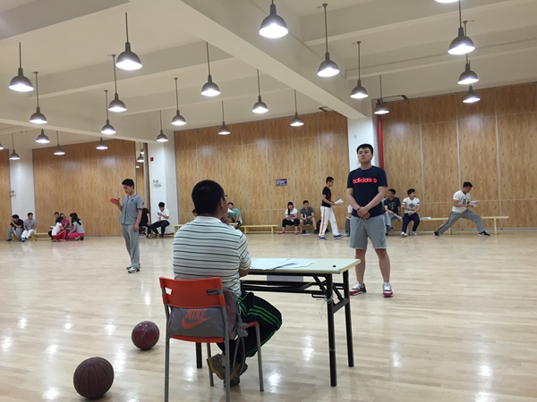 此次模拟说课采用自主选题的形式,包括着装和教态、口令和示范、组织教法、教学常规及教学设计中的亮点等,每位考生现场说课15分钟,然后由评委老师现场点评: