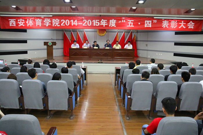 本网讯4月29日,2014—2015年度“五四”表彰大会在我院新教学楼一楼报告厅举行。党委副书记朱元利,组织部部长雷甲谋,组织部常务副部长郭春玲,学工部部长张朝阳,体育教育系党总支书记屈崇斌,体育艺术系党总书记李美霞,社会体育与休闲体育系党总支书记吴晓娟,武术系党总支书记梁咏梅,健康科学系党总书记刘勇,宣传部常务副部长高月宏,学工部副部长、团委负责人郑璐出席了表彰大会。