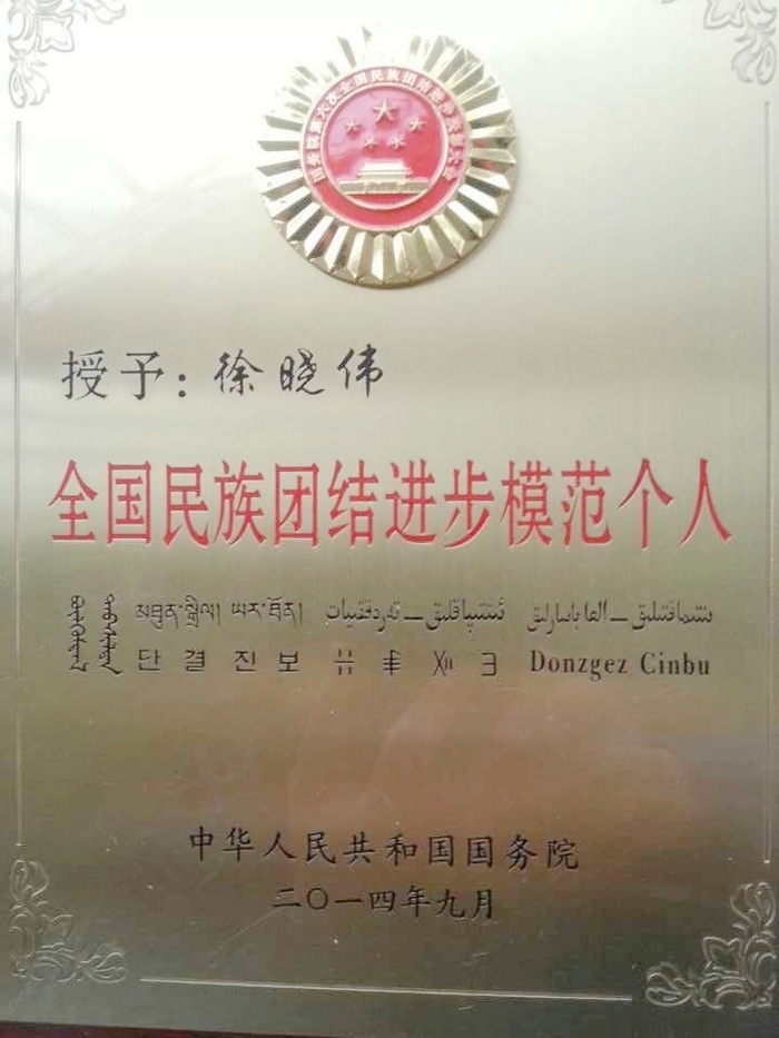 徐晓伟同志获“全国民族团结进步模范”