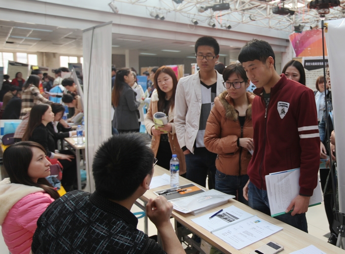 人头攒动的毕业生招聘会现场