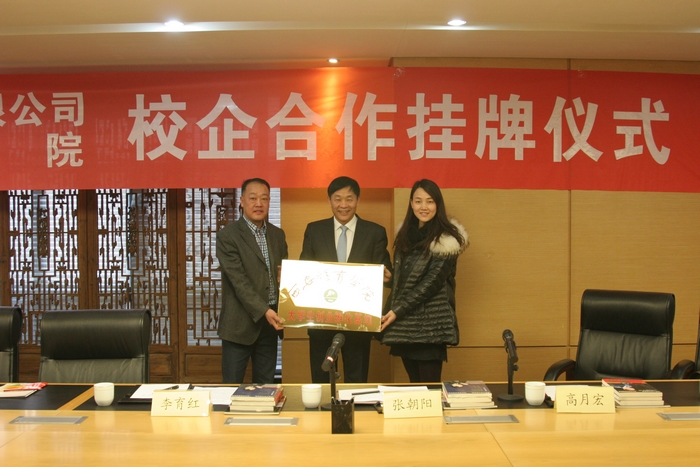 本网讯12月17日,我院与陕西丹尼尔集团举行“校企合作挂牌仪式”,我院学工部部长张朝阳、团委书记高月宏、就业指导中心主任李育红、团委副书记王鹏,陕西丹尼尔集团总裁王国庆、副总裁王君玉、总裁办主任韦茜、人事行政部副经理陈澎、孵化部项目经理李娜、总裁秘书王彬出席挂牌仪式并揭牌。